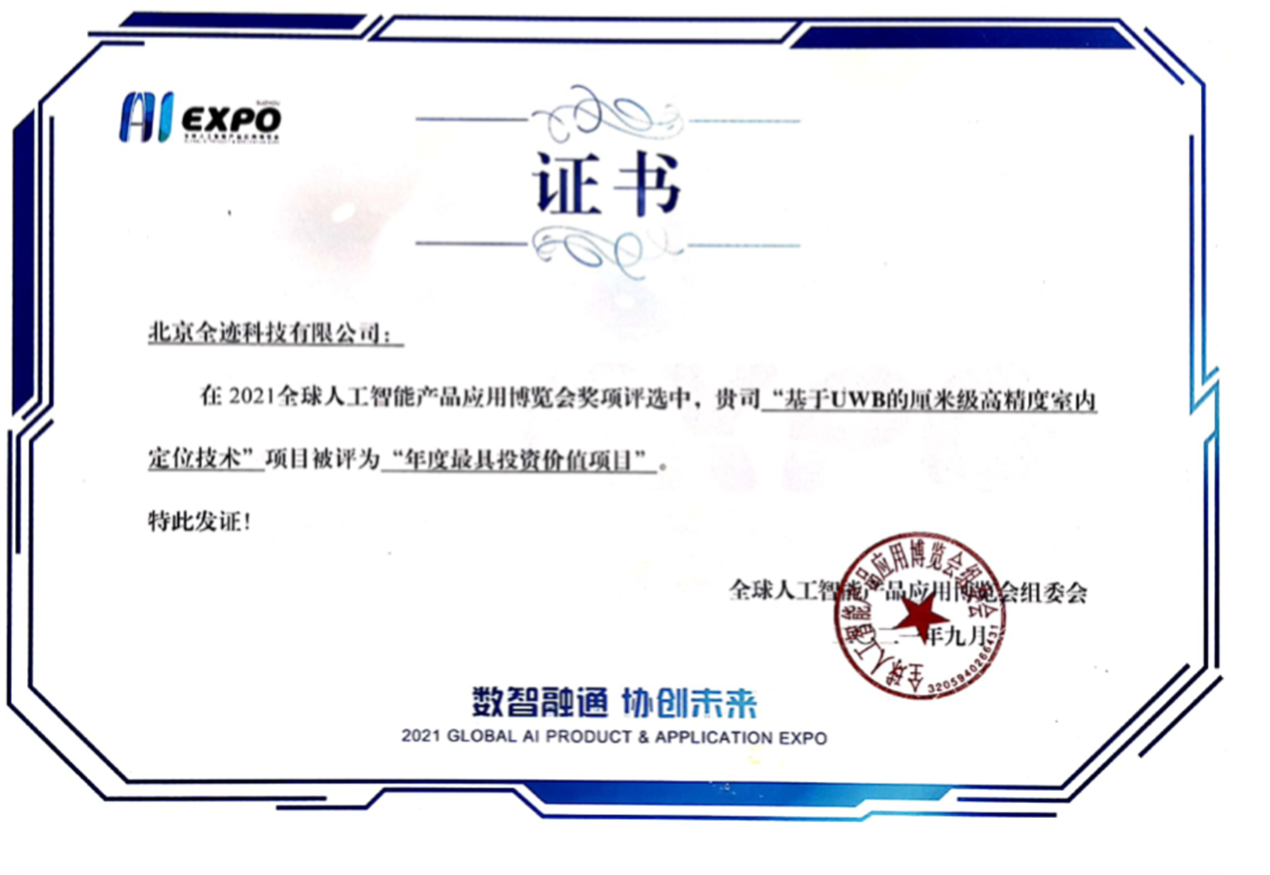 公司創始團隊來自華為、威盛和清華,具備工業和學術界資深經驗。公司曾獲得多家知名風險投資機構投資,多次獲評“物聯之星”“最有影響力物聯網定位企業獎”等榮譽。 全跡科技是國家級高新技術企業、中關村高新技術企業、北京市“專精特新”企業、中國通信標準化協會會員、中國移動精準定位聯盟理事單位、中國聯通5G應用創新聯盟會員單位、國際FiRa聯盟高級會員。