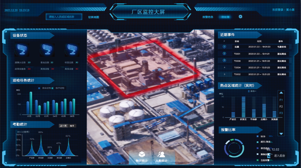 通過(guò)預(yù)先在某空間安裝好定位基站,基站與標(biāo)簽相互通信以TOF(飛行時(shí)間)、TDOA(到達(dá)時(shí)間差)、AOA(到達(dá)角)的定位算法解算標(biāo)簽位置,最終將裝配了標(biāo)簽的人員、車(chē)輛、物資位置信息投射到顯示終端。