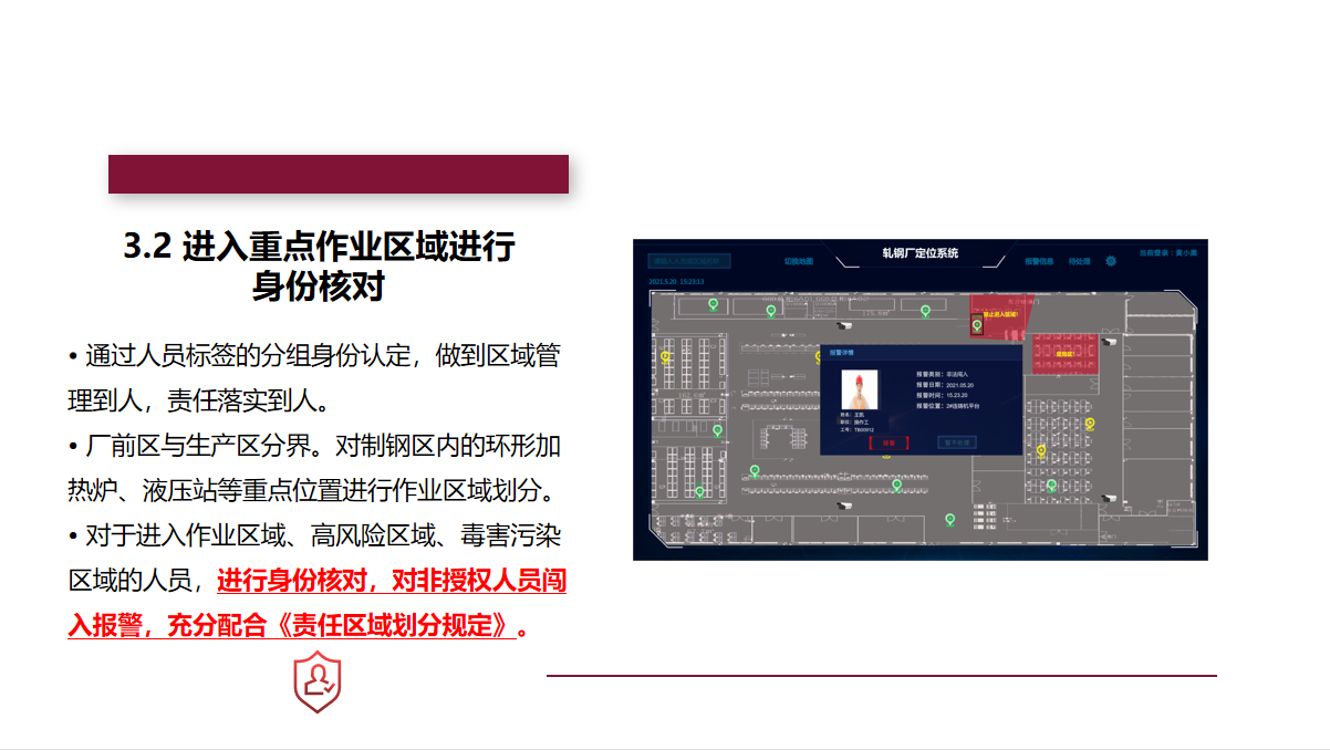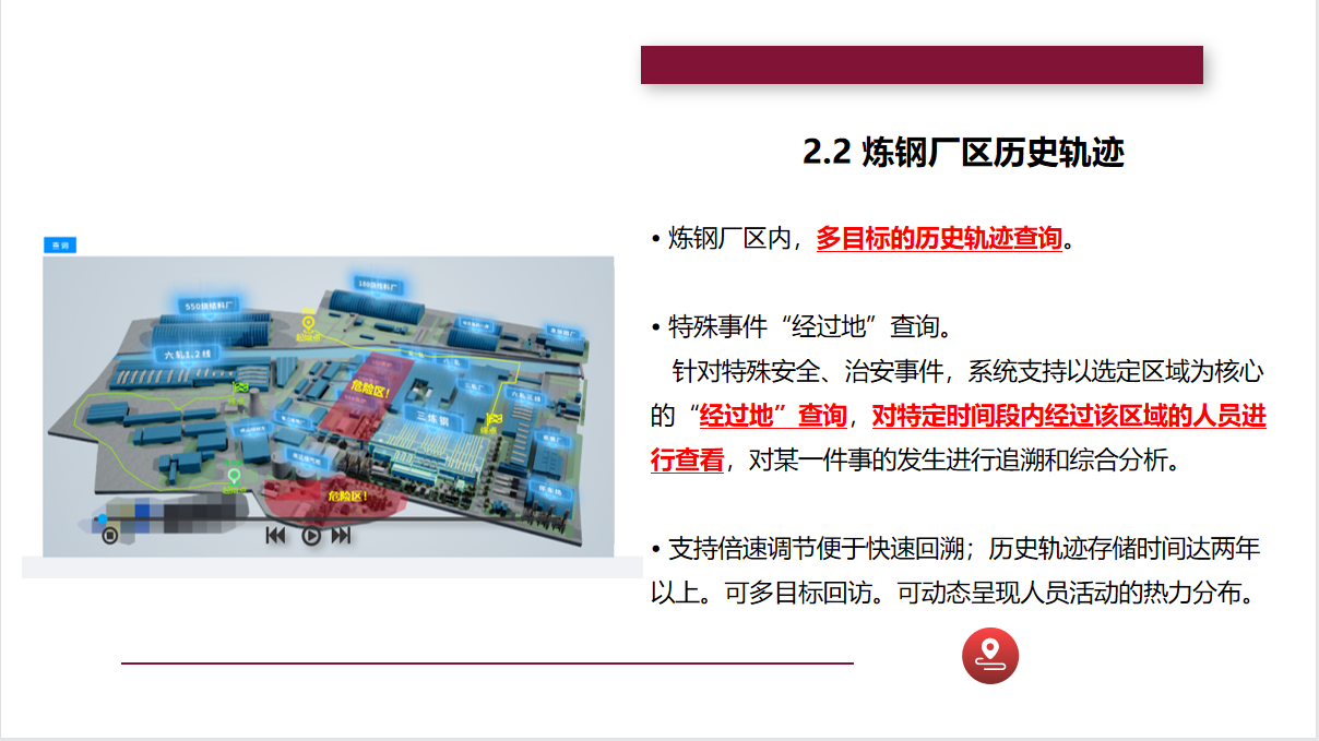 全跡科技UbiTraq冶金鋼鐵高精度定位系統(tǒng),通過在廠區(qū)內(nèi)布設(shè)規(guī)定數(shù)量的UWB定位基站,實時精確地對人員、車輛、資產(chǎn)上的標簽進行定位,并將位置信息顯示在廠區(qū)的控制中心,進行安全區(qū)域管控、人員在崗監(jiān)控等,最大限度地避免事故的發(fā)生,助力冶金鋼鐵企業(yè)實現(xiàn)智慧化的安全運營管理。