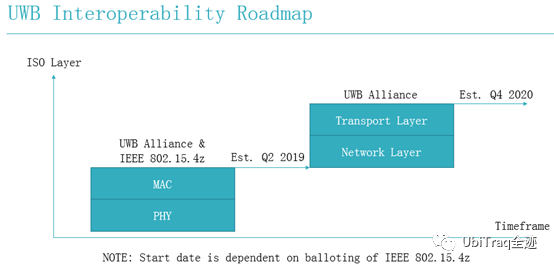根據(jù)UWB Alliance路線圖,計(jì)劃在2020年Q4將網(wǎng)絡(luò)層和傳輸層訂立標(biāo)準(zhǔn)。